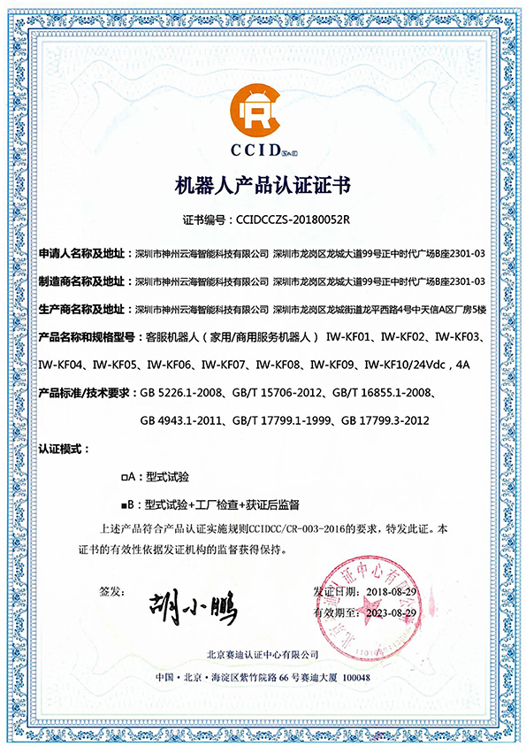 神州云海研發的艾娃客服機器人是一款室內服務型機器人,它